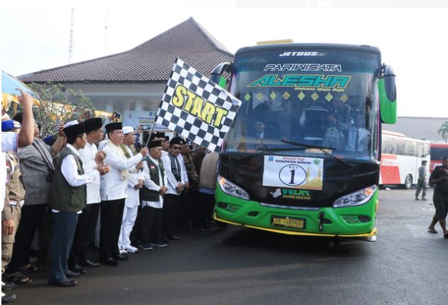 “Saya mewakili Ibu Bupati memberangkatkan 440 jemaah haji kloter 5 nasional dan kloter pertama asal Kabupaten Serang. Adapun untuk total jemaah haji asal Kabupaten Serang sebanyak 1.301 orang,”ujar Nanang Supriatna usai pelepasan jemaah haji.