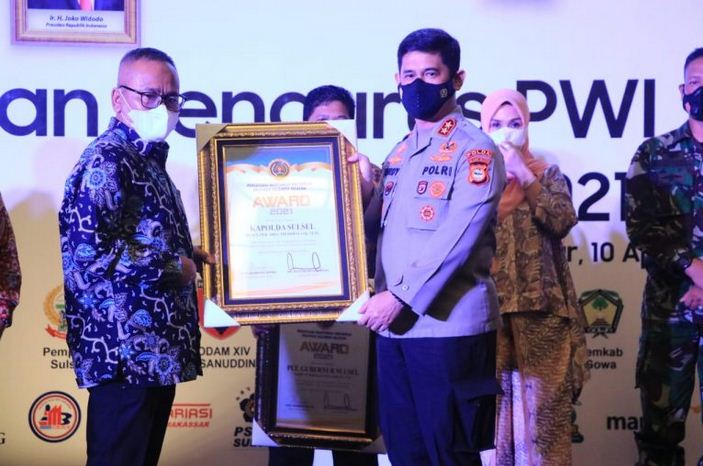Penghargaan tersebut diberikan saat menghadiri acara pelantikan pengurus PWI Sulawesi Selatan masa Bakti 2020-2025, bersama Kabid Humas Polda Sulsel Kombes Pol E Zulpan, Sabtu (10/04/2021).
