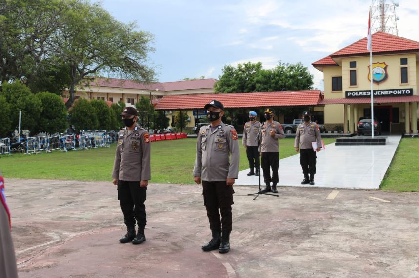 Jeneponto – Javanewsonline.co.id | Personil Polres Jeneponto mengikuti Jam pimpinan yang dipimpin oleh Kapolres Jeneponto AKBP Yudha Kesit Dwijayanto SH SIK, bertempat di halaman Apel Mapolres Jeneponto Sulawesi Selatan, Senin (8/11/2021).