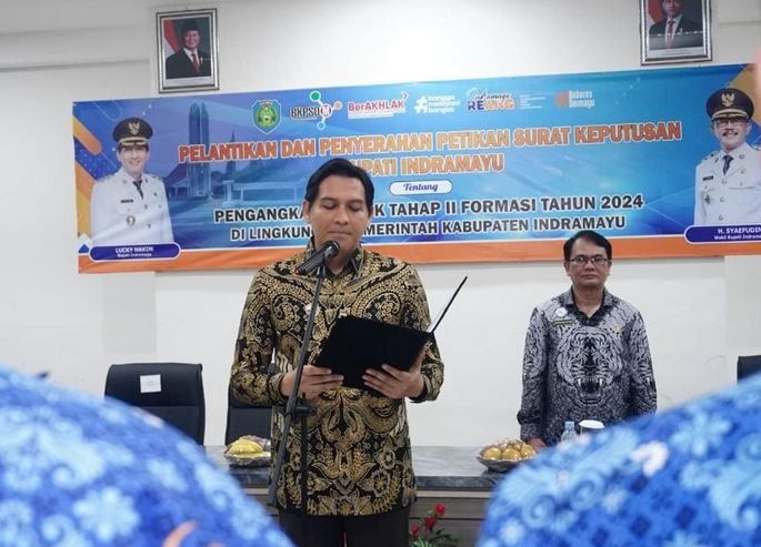 Pesan itu disampaikan Lucky dalam acara pelantikan sekaligus penyerahan petikan Surat Keputusan (SK) Bupati Indramayu kepada 172 PPPK tahap II formasi 2024. Prosesi berlangsung di Aula Bappeda-Litbang Indramayu, Rabu (1/10/2025), dengan penuh khidmat.