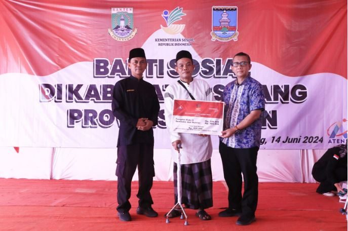 Kementerian Sosial Republik Indonesia (Kemensos RI) menyalurkan program bakti sosial atau baksos untuk masyarakat Kabupaten Serang capai Rp1,3 miliar. Penyaluran secara simbolis oleh Sekretaris Direktorat Jendral (Ditjen) Rehabilitasi Sosial Kemensos RI, Salahudin kepada para penerima manfaat di Kecamatan Pabuaran pada Jum’at, 14 Juni 2024.