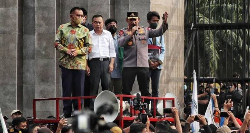 Aspirasi BEM SI ini diterima langsung oleh Pimpinan DPR RI, Sufmi Dasco , Rahmat Gobel dan Lodewijk didampingi Kapolri RI Jenderal Listyo Sigit Prabowo.
