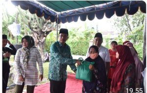 “Selain bapak ibu menerima Sembako dari kami, ini ada tambahan beras tiga kilo dari bapak bupati,” ucapnya kepada penerima bantuan. (Eka)