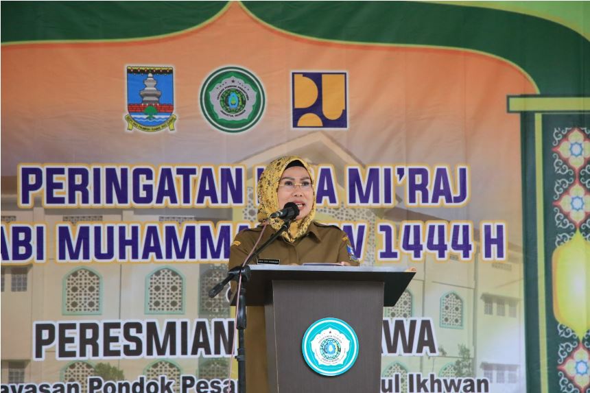 Bupati Serang Ratu Tatu Chasanah bersama Anggota Komisi V Dewan Perwakilan Rakyat Republik Indonesia (DPR RI) Tubagus Haerul Jaman meresmikan rumah susun atau rusun santri Pondok Pesantren (Ponpes) Jamiatul Ikhwan di Kampung Pasir Buntu, Desa Malanggah, Kecamatan Tunjung Teja pada Senin, 20 Februari 2023.