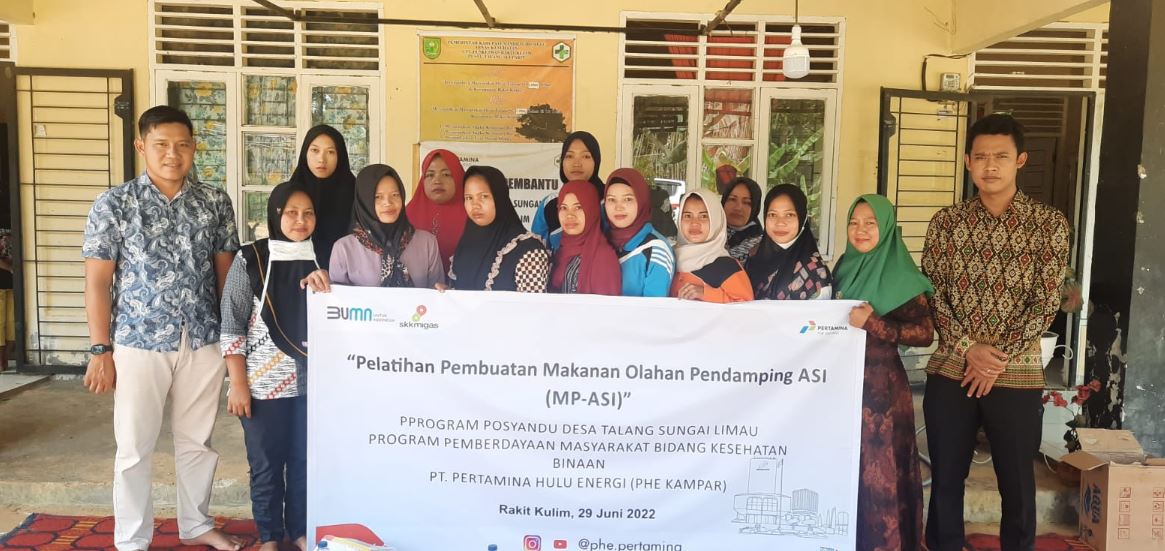 Indragiri Hulu – Javanewsonline.co.id | Dalam rangka mendukung program pencegahan stunting dan gizi buruk di wilayah operasi, PT Pertamina Hulu Energi (PHE) Kampar memberikan pelatihan membuat makanan olahan pendamping ASI (MPASI) bagi kader Posyandu, di Desa Talang Sungai Limau Kecamatan Rakit Kulim Kabupaten Indragiri Hulu Riau, Rabu (29/6).