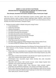 Terkait Konsultasi Publik yang sudah disepakati, mengenai penyusunan dokumen analisis mengenai dampak lingkungan hidup (Amdal), yang harus melibatkan masyarakat Desa Kemojan dan juga tahapan-tahapan pembangunan yang melibatkan masyarakat, Jack meminta pihak LHI untuk mempelajarinya kembali.