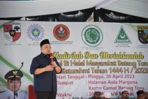“Kita siap menyatukan ide-ide dalam upaya mendukung Bupati Dolly untuk menakhodai pembangunan Tapsel yang lebih sehat, cerdas dan sejahtera,” kata Pengurus Nahdlatul Ulama (NU) Tapsel, OK Hazmi Usman Siregar dalam sambutannya mewakili Ormas pada acara Halal bi Halal dan Silaturrahim Idul Fitri 1444 Hijiriah, di halaman Aula Marguna, Kantor Camat Batang Toru, Minggu (30/4).
