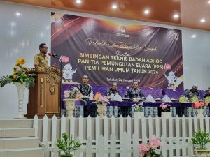 Takalar (Sulsel) – Javanewsonline.co.id | Penjabat (Pj) Bupati Takalar Dr Setiawan Aswad menghadiri acara pelantikan dan pengambilan sumpah serta bimbingan teknis Panitia Pemungutan Suara (PPS) Pemilihan Umum tahun 2024, di Aula Wisata Pantai Topejawa, Kecamatan Mangarabombang, Selasa (24/1).