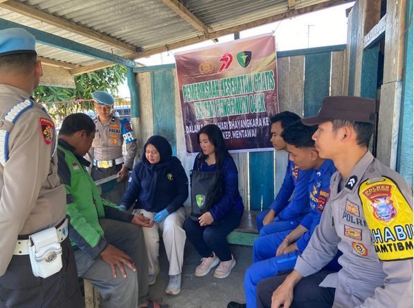 MENTAWAI – Javanewsonlin.co.id | Dalam rangka memperingati Hari Ulang Tahun (HUT) Bhayangkara ke-79, Kepolisian Resor (Polres) Kepulauan Mentawai menggelar pemeriksaan kesehatan gratis bagi pengemudi ojek daring/online. Kegiatan ini dipusatkan di pangkalan ojek KM 0, Sipora Utara, pada Kamis, 19 Juni 2025.