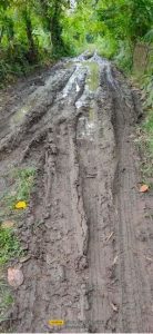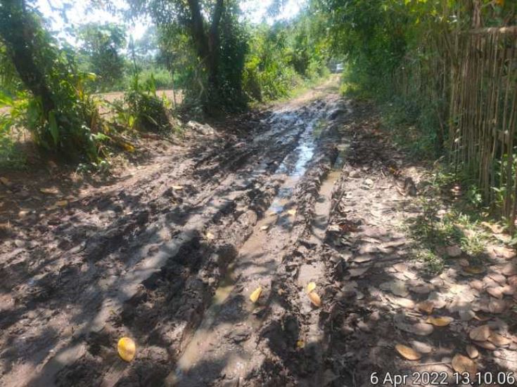 Jalan tersebut nampak seperti kubangan kerbau yang digenangi air kotor dan lumpur. Selain itu kendaraan bermotor juga sering melintasinya. Terkadang ada kendaraan yang terpeleset akibat licinnya jalan lingkungan itu.