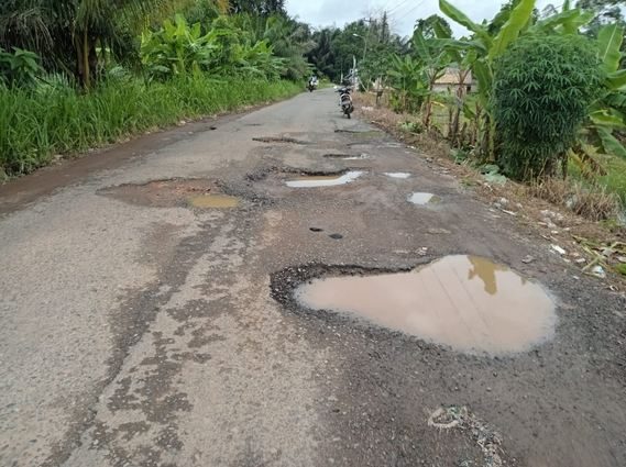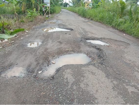 Pantauan di lapangan menunjukkan sejumlah titik jalan berlubang, tergenang air, dan berlumpur. Warga menyebut kondisi tersebut kerap memicu kecelakaan, terutama bagi pengendara sepeda motor.