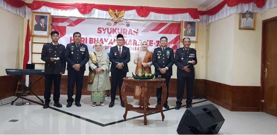 Rangkaian upacara kemudian berlanjut dengan acara syukuran Hari Bhayangkara ke-79 di Aula Serbaguna Sekretariat Kantor Bupati. Dalam sambutannya, Kapolres Rory Ratno tak henti mengucapkan terima kasih kepada seluruh hadirin. Dengan mata berbinar penuh harap, ia mengajak semua pihak untuk bahu-membahu membangun Mentawai.