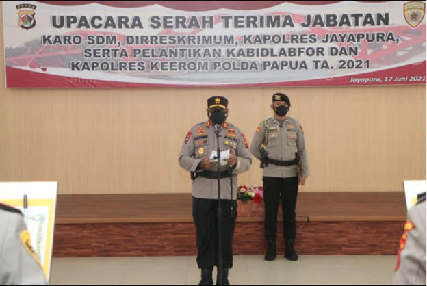 KEP/969/VI/2021 tanggal 1 Juni 2021 tentang Pemberhentian dan Pengangkatan dalam Jabatan Lingkungan Polri dan Skep Kapolda Papua No : SPRINT/458/VI/KEP/2021 tanggal 16 Juni 2021.