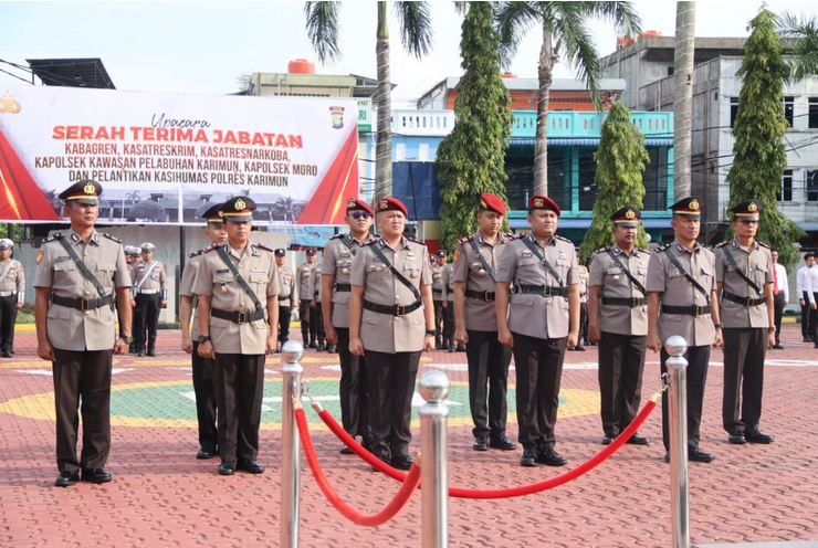 Karimun – Javanewsonline.co.id | Kepolisian Resor Karimun menggelar upacara serah terima jabatan (sertijab) sejumlah pejabat utama, Rabu (8/10/2025). Upacara berlangsung di lapangan apel Polres Karimun dan dipimpin langsung oleh Kapolres Karimun, AKBP Robby Topan Manusiwa, S.I.K., M.H.