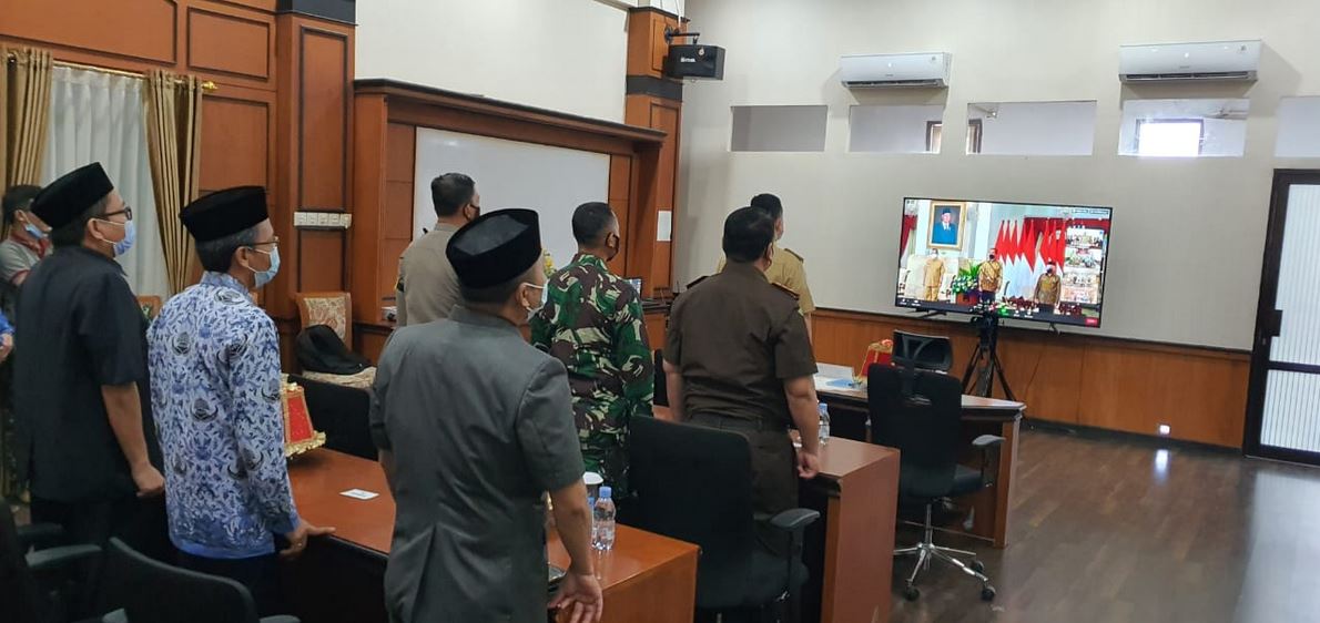 Pangkep – Javanewsonline.co.id | Hari pertama memasuki hari kerja pasca libur Idul Fitri 1442 H, Presiden Republik Indonesia Ir H Joko Widodo, Senin (17/5/2021), memimpin Rapat Koordinasi bersama seluruh Kepala daerah dan Forkopimda di seluruh Indonesia, untuk memberikan pengarahan secara virtual terkait antisipasi tingkat penyebaran Covid-19 pasca Hari Raya Idul Fitri, di ruang kerja Bupati Pangkep.