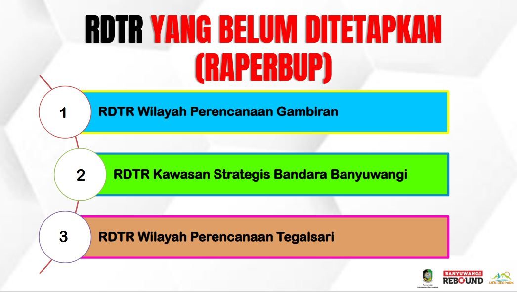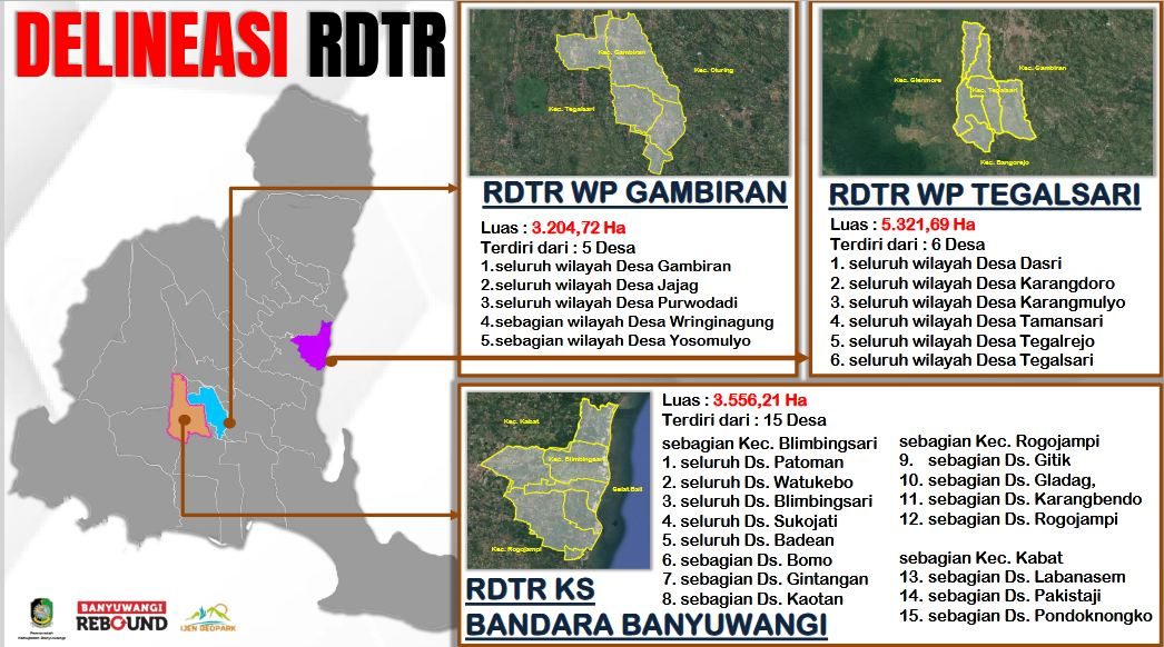 Kepala Bidang Penataan Ruang Dinas PU CKPP Banyuwangi, Ir. Bayu Hadiyanto, menjelaskan bahwa tiga RDTR baru ini berlokasi di wilayah Gambiran, kawasan Bandara Banyuwangi, dan Tegalsari. “Tujuan penetapan RDTR ini adalah sebagai pendetailan dan operasional pelaksanaan RTRW Banyuwangi,” kata Bayu, Jumat (8/8/2025). Tentu saja, langkah ini sejalan dengan Peraturan Daerah Nomor 2 tahun 2024.