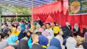 Kegiatan pasar murah yang diselenggarakan oleh DKPTPH Kabupaten Pelalawan dihadiri Asisten II Fahrizal MSi, Kadis DKPTPH Zulkifli S. Pj Kadis UMKM Hanafie SSos MSi, Camat Pangkalan Kerinci Faisal SSTP, Kepala BPS Kabupaten Pelalawan Hartono, Ketua TP-PKK Sella Pitaloka SAP dan Manager Humas PT Musim Mas Malinton Purba SH