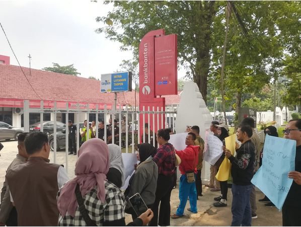 Serang – Javanewsonline.co.id | Layanan perbankan di kantor pusat Bank Banten di Jalan Veteran, Kota Serang, lumpuh total setelah aksi demonstrasi Koalisi Aksi Rakyat (Koar) Banten, Rabu, 17 September 2025. Ratusan massa memenuhi area masuk kantor sehingga kendaraan nasabah tidak dapat mengakses halaman bank.