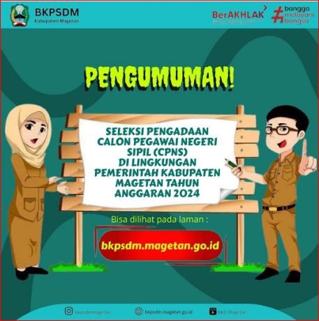 Bagi masyarakat Magetan yang ingin mendapatkan informasi lebih lanjut dan valid terkait pelaksanaan seleksi CASN Tahun 2024, disarankan untuk terus memantau informasi resmi melalui website https://bkd.magetan.go.id dan Instagram resmi BKPSDM Magetan (@bkpsdmmagetan). (Rendra)