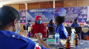 Jayapura – Javanewsonline.co.id | Memperingati HUT Demokrat yang ke 20, DPD Partai Demokrat Provinsi Papua melaksanakan Bhakti Sosial Vaksinasi Massal tahap pertama, berlangsung di halaman rumah Sekretaris DPD Partai Demokrat Papua Boy Markus Dawir Entrop Kota Jayapura, Sabtu 11 September 2021.