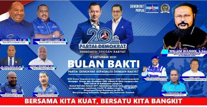 Sebelumnya, pelaksanaan HUT ke 20 Partai Demokrat digelar pada tanggal 10 September 2021 di Pantai Hool Kota Jayapura, sekaligus peletakan batu pertama pembangunan Kantor DPD oleh Ketua DPD Partai Demokrat Provinsi Papua, Lukas Enembe yang juga sebagai Gubernur Papua. Puncak acara dihadiri pula oleh seluruh pengurus DPD, DPC, Simpatisan, serta seluruh Kader Partai Demokrat dan Partai Koalisi.