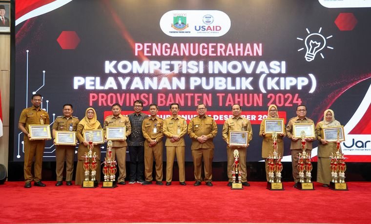 Pada kesempatan tersebut, Pj Gubernur Banten juga menyerahkan penghargaan kepada para pemenang KIPP 2024. Untuk kategori Top Inovasi Replikasi, penghargaan diberikan kepada Dinas Pendidikan dan Kebudayaan Kota Cilegon. Kategori Perangkat Daerah Kabupaten/Kota Terinovatif dimenangkan oleh Dinas Kesehatan Kabupaten Serang, sementara kategori Perangkat Daerah Provinsi Terinovatif diraih oleh Dinas Pemberdayaan Perempuan, Perlindungan Anak, Kependudukan dan Keluarga Berencana Provinsi Banten.