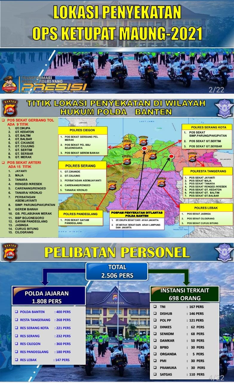 “Jumlah tersebut tersebar di 24 titik pos penyekatan, 9 Pos Sekat yang berada di Pintu Gerbang Tol, mulai dari Cikupa, Kedaton, Balaraja Timur, Balaraja Barat, Cikande, Ciujung, Serang Timur, Serang Barat dan Merak. Ada juga di 15 Pos Sekat Jalur arteri wilayah Hukum Polda Banten,” Jelas Edy Sumardi, Senin (10/5).