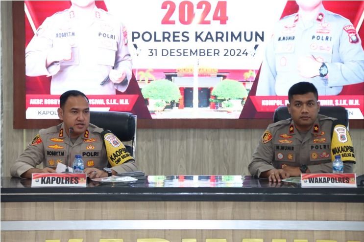 Karimun, Kepri – Javanewsonline.co.id | Polres Karimun menggelar rilis capaian kinerja akhir tahun 2024 yang dilaksanakan di Gedung Catur Prasetya, Mapolres Karimun, pada Selasa (31/12/2024) pagi. Acara ini dipimpin langsung oleh Kapolres Karimun AKBP Robby Topan Manusiwa, didampingi Wakapolres Karimun KOMPOL Misbachul Munir, serta dihadiri pejabat utama Polres Karimun dan sejumlah awak media.