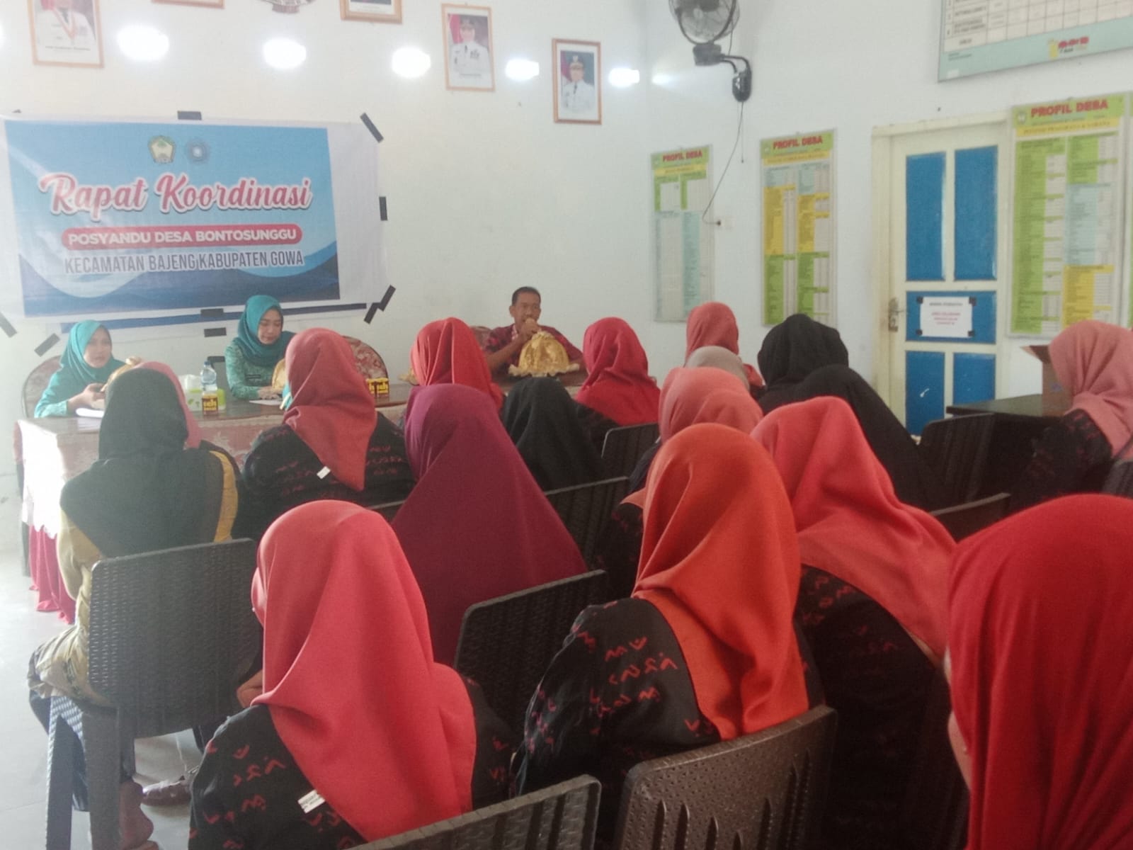 Gowa – Javanewsonline.co.id | Pemerintah Desa Bontosunggu, Kecamatan Bajeng, Kabupaten Gowa, menggelar Rapat Koordinasi Posyandu sekaligus pertemuan rutin para kader Pos Pelayanan Terpadu (Posyandu), Kamis (24/4/2025). Kegiatan ini menjadi salah satu langkah strategis dalam memperkuat pelayanan kesehatan masyarakat di tingkat desa, khususnya bagi ibu hamil, balita, dan lansia.