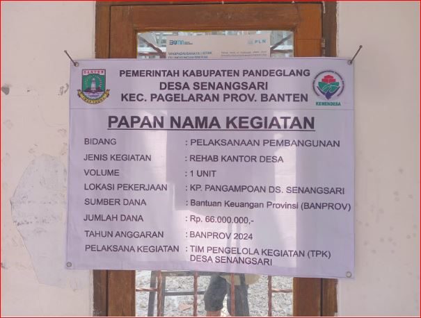 Di Desa Senang Sari, Kecamatan Pagelaran, Kabupaten Pandeglang, Banten, udara pagi yang sejuk diwarnai dengan suara palu yang bersahutan. Di tengah rutinitas desa yang tenang, ada pemandangan yang menarik perhatian, atap Balai Desa yang tengah direhabilitasi.