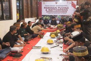 Pangkep – Javanewsonline.co.id | Dandim 4421/Pangkep Letkol Inf Hengky Vantriardo SE MM MHan mendapat kehormatan ikut serta dalam ritual membersihkan benda pusaka, pada acara Mattompang atau pencucian benda pusaka, dipimpin langsung oleh Ketua Badik Celebes Ir Djajang Andi Abbas ST MT IPU, di Baruga Bela Negara Kodim 1421/Pangkep, Jalan Kesatria Kel Padoang doangan Kec Pangkejene Kab Pangkep, Sabtu malam (04/06).