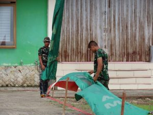 Teluk Meranti – Javanewsonline.co.id | Satgas TNI Manunggal Membangun Desa(TMMD) ke -115 Kodim 0313/KPR yang berada di Kelurahan Teluk Meranti, pagi ini tampak melaksanakan pembersihan dan pemasangan umbul-umbul di seputaran Komando Taktis (Kotis) TMMD ke- 115 Tahun 2022, dihalaman kantor Camat Teluk Meranti Kab Pelalawan Riau, Sabtu (22/10).
