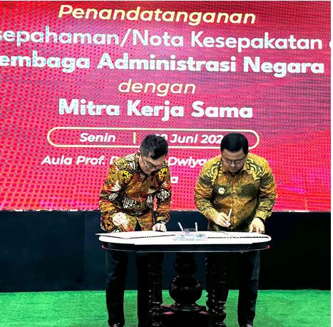 JAKARTA – JAVANEWSONLINE.CO.ID | Pemerintah Kabupaten Bantaeng menandatangani Nota Kesepahaman (MoU) dengan Lembaga Administrasi Negara Republik Indonesia (LAN-RI) untuk penguatan kapasitas ASN Kabupaten Bantaeng. Acara seremonial penandatanganan ini berlangsung di Ruang Rapat Pimpinan, Gedung B LAN, Jakarta Pusat, pada Senin (10/06).