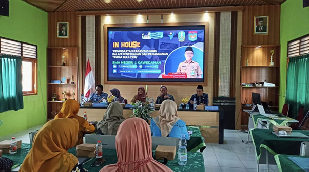 Magetan – Javanewsonline.co.id | SMAN 1 Kawedanan, Magetan, menggelar kegiatan In House Training (IHT) Peningkatan Kapasitas Guru dalam Pencegahan dan Penanganan Bullying pada Jumat (8/3).