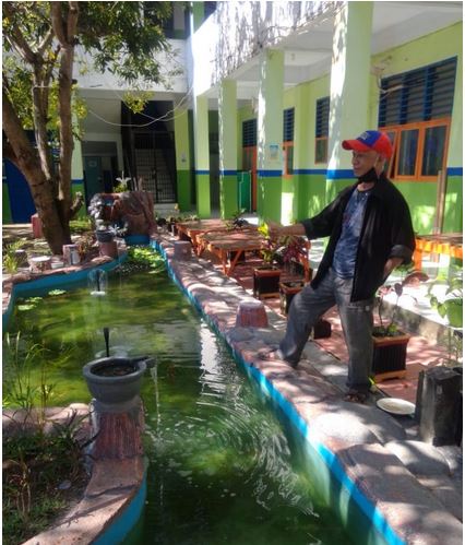 Daeng Timung sapaan akrab Kepala SMPN 4 Sungguminasa H Zainal SPd MPd mengatakan, apa yang di buat dan menjadi karya sekolah, bermuara pada upaya peningkatan kualitas dan kuantitas yang di bungkus dengan keindahan, kesejukan, kenyamanan dilingkungan sekolah itu sendiri, semoga. (Syarifuddin)