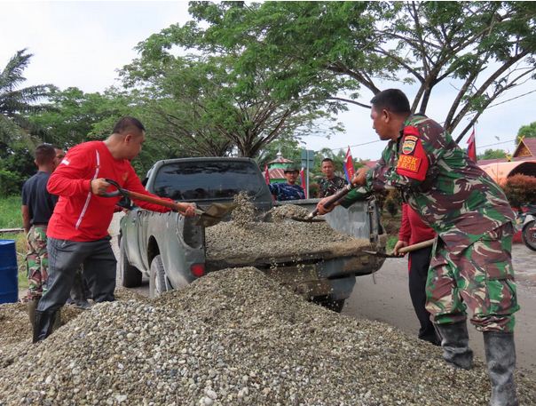 Melihat warganya ikut bergotong royong bahu membahu bersama anggota Satgas TMMD dalam menyelesaikan sasaran, Camat Teluk Meranti pun tidak ingin ketinggalan dan berpangku tangan.