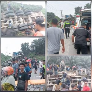 Pelalawan – Javanewsonline.co.id | Lagi-lagi terjadinya kecelakaan mobil di jalan lintas timur, tepatnya di Simpang Eko Dua menuju Simpang Perak Kota Pangkalan Kerinci, Kecamatan Pangkalan Kerinci, Kabupaten Pelalawan, menimbulkan korban jiwa, Rabu (19/7).