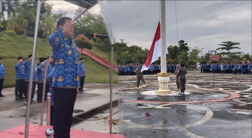 Pelalawan – Javaanewsonline.co.id | Wakil Bupati Pelalawan, H. Husni Thamrin, memimpin apel peringatan Hari Kesadaran Nasional yang digelar di halaman Kantor Bupati Pelalawan, Kamis (17/4/2025). Apel tersebut merupakan agenda rutin bulanan yang jatuh setiap tanggal 17, dengan tujuan membina kedisiplinan dan menumbuhkan semangat pengabdian kepada bangsa dan negara.