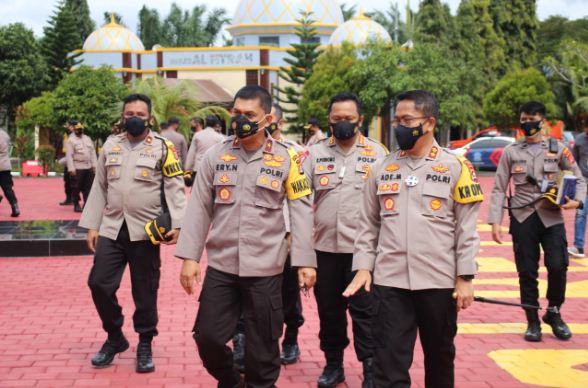 Banten – Javanewsonline.co.id | Wakapolda Banten Brigjen Pol Drs Ery Nursatari MH didampingi oleh Dirlantas dan Kabid Propam Polda Banten, bersama beberapa pejabat utama lainnya berkunjung ke Mako Polres Lebak. Kunjungan kerja tersebut dalam rangka memberikan arahan kepada anggota Polres Lebak dimasa pandemi, untuk ikut serta mensukseskan Program PPKM hingga dapat memutus mata rantai penyebaran covid-19, Rabu (24/03/2021).